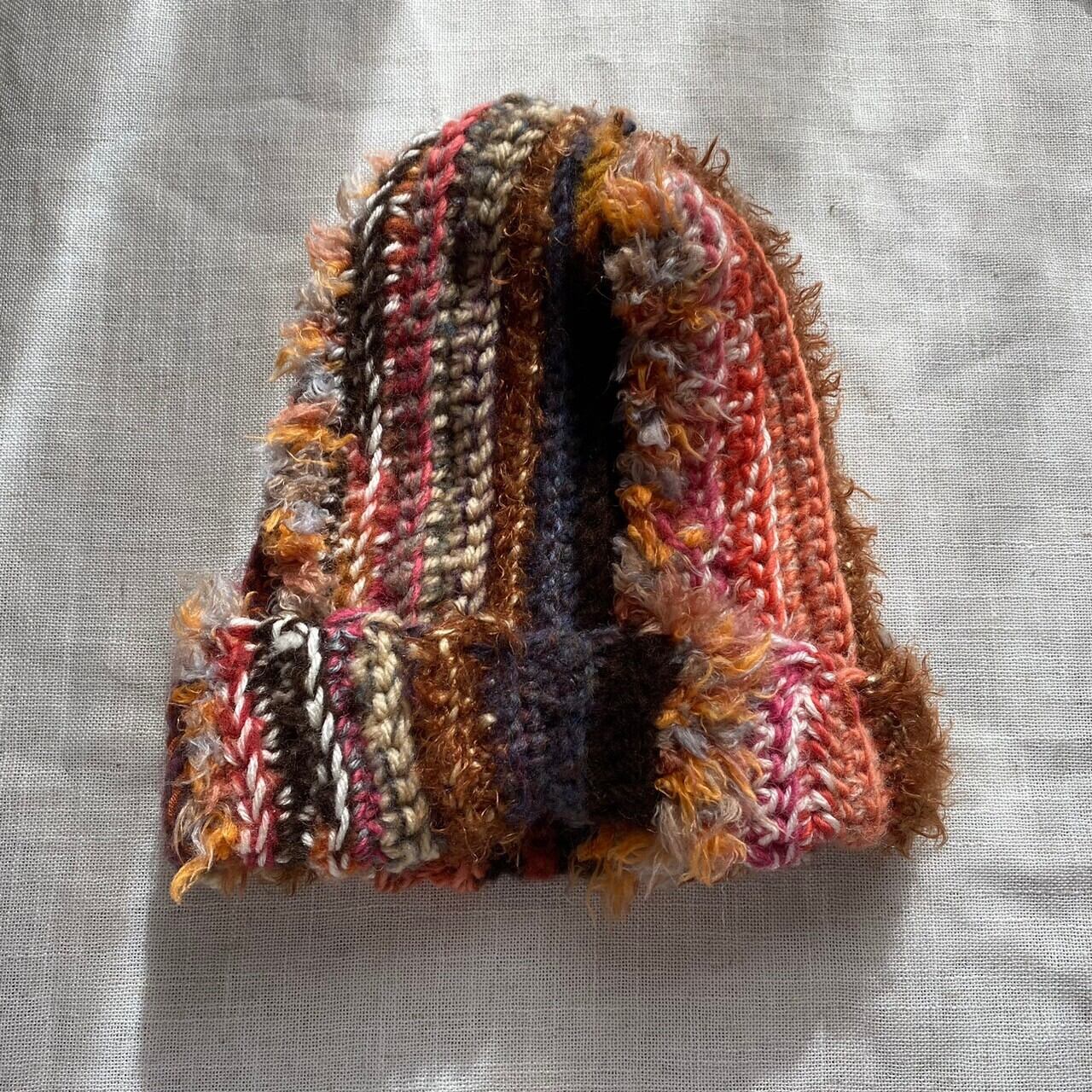 グラデーションの毛糸を使用したり、毛糸同士をmixしているので色の出方や配色が同じものはなく1点ものです!