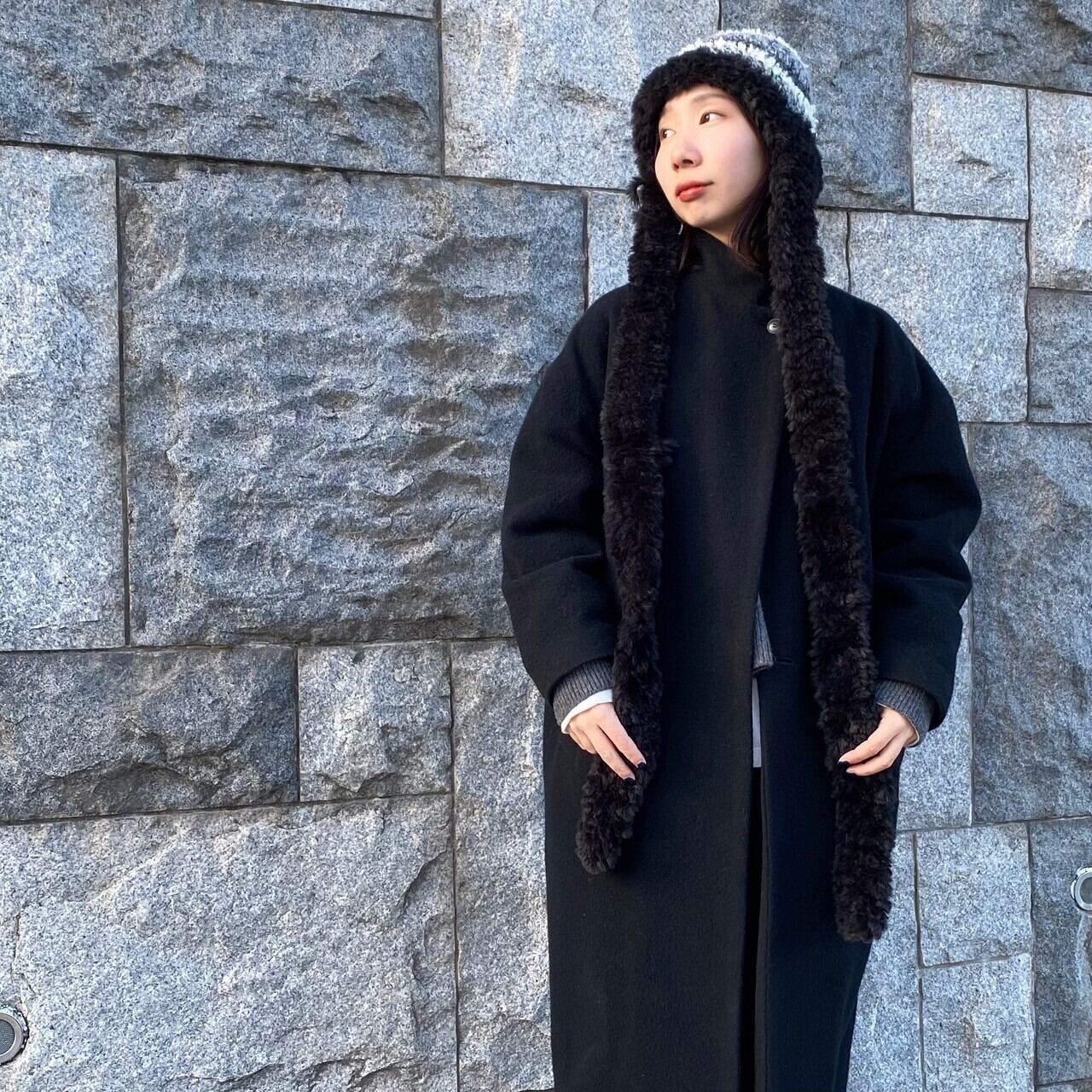 本体にはモヘアを編み込み、マフラー部分をファーヤーンで編んでいるのでとっても暖かいです!